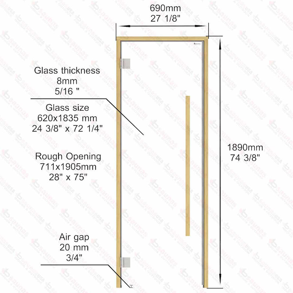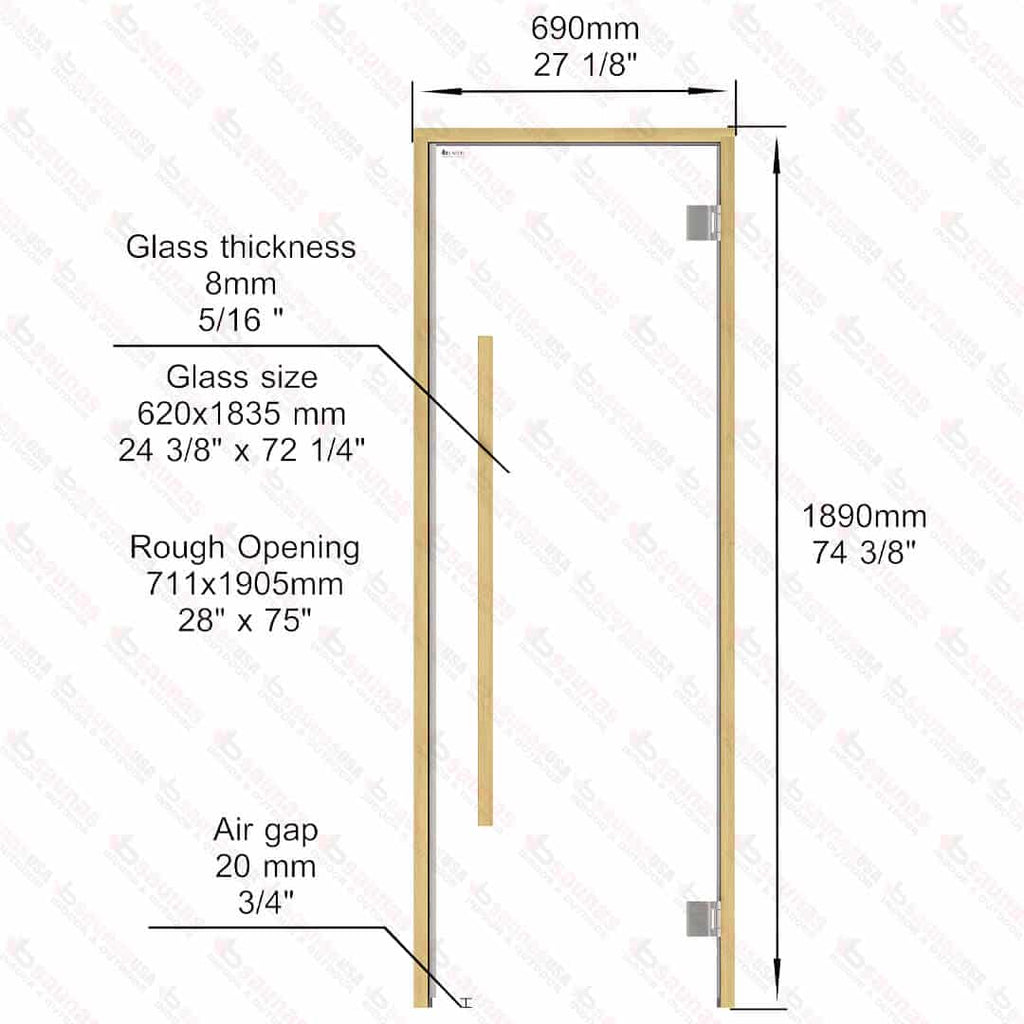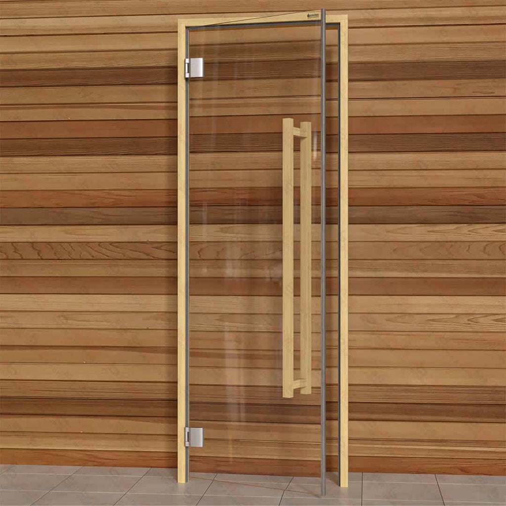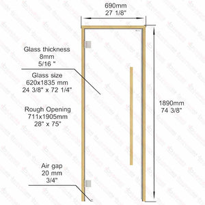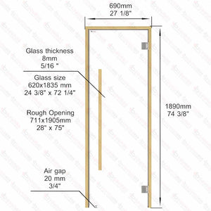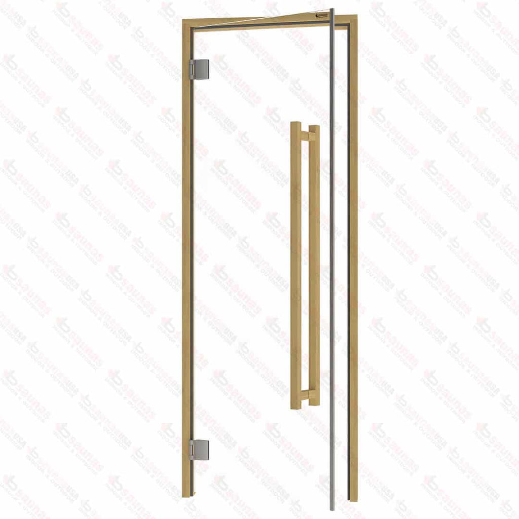 The Benelux Alder Frame Glass Doors come pre-hung in the frame, making installation quick and hassle-free. All necessary hardware is included in the package, streamlining the assembly process. The door is fitted with 8mm-thick tempered glass, ensuring it is sauna-rated and built to withstand the high temperatures and humidity typical of sauna environments.