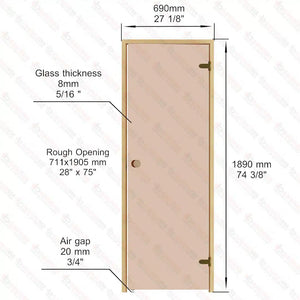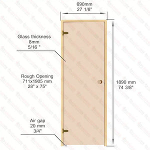 The Alder Frame Glass Doors come pre-hung in the frame, making installation a breeze. The package includes all the required hardware for easy assembly. The door is fitted with 8mm-thick tempered glass, making it sauna-rated and specially designed to withstand the intense heat and humidity of the sauna environment.