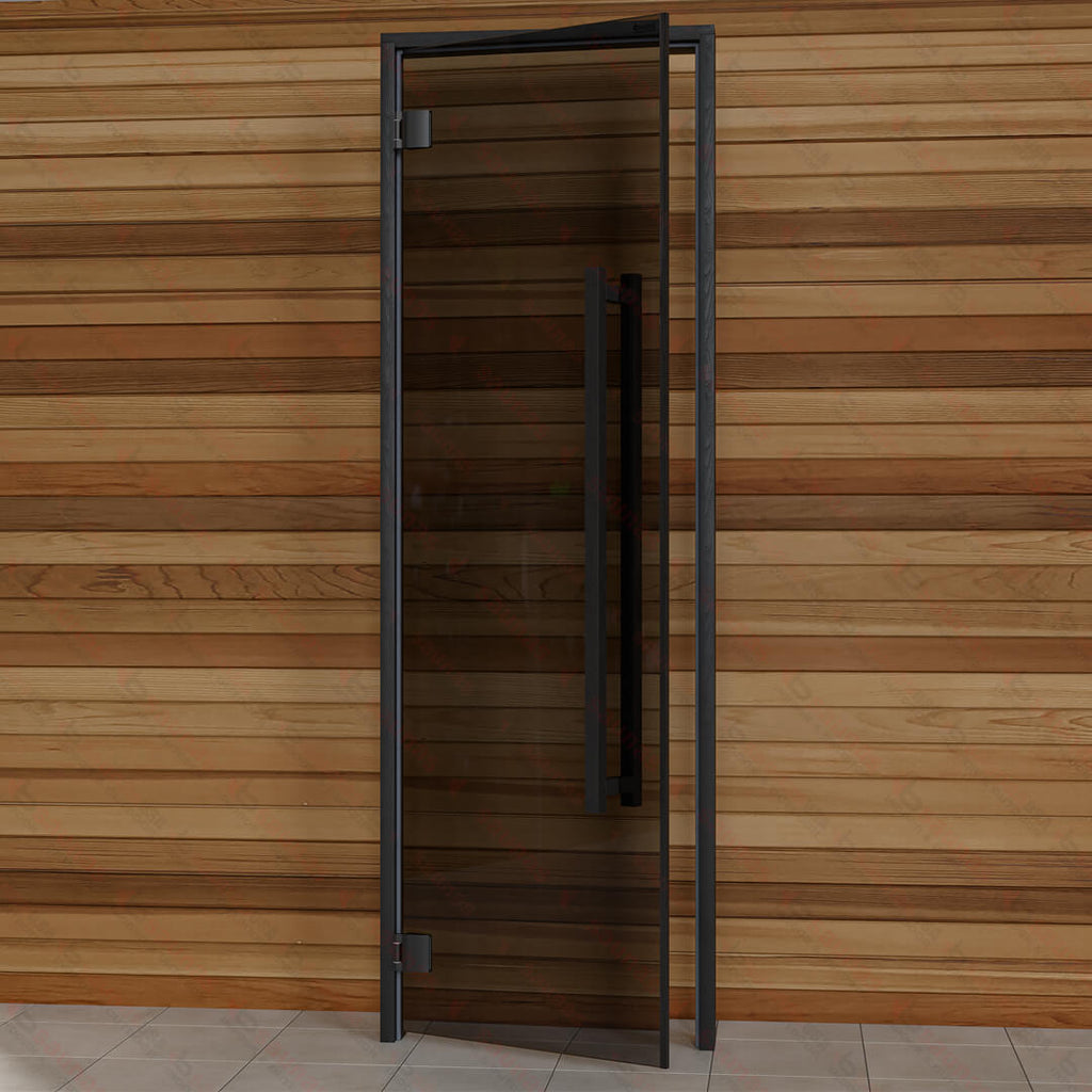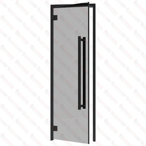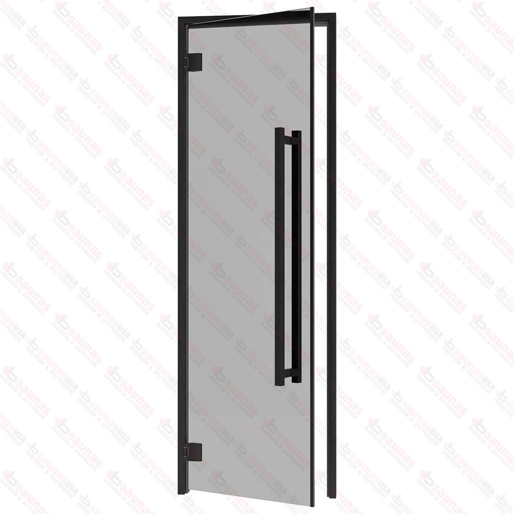 Aspen Black Frame Door Benelux Square, Grey Glass, 690×2090 mm (27 1/8″ x 82 1/4″) - West Coast Saunas - BSAUNAAGGBSD2L