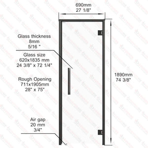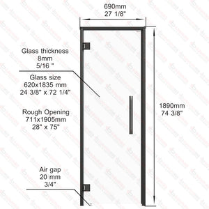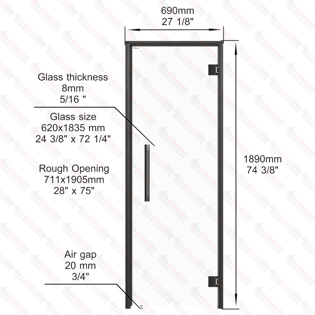 Aspen Black Frame Sauna Door Benelux, Clear Glass, 690×1890 mm (27 1/8″ x 74 3/8″)