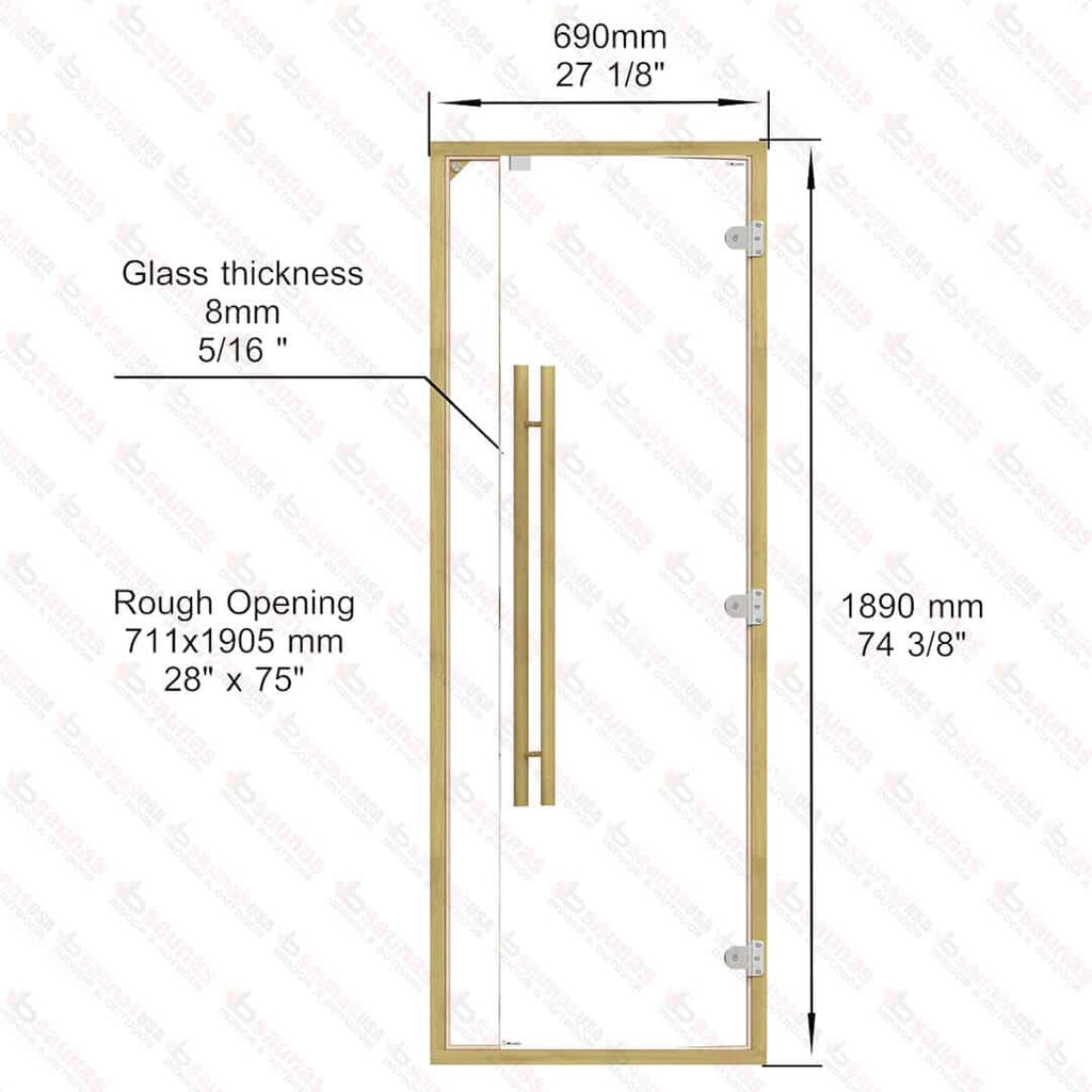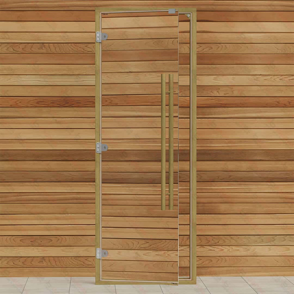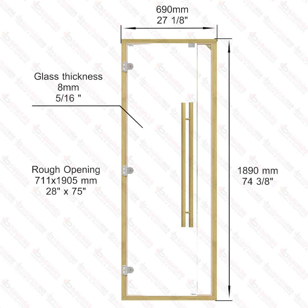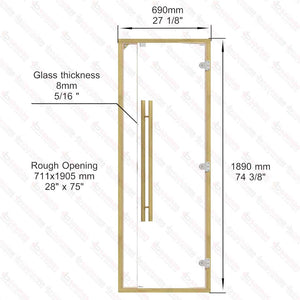 Clear Red Cedar Frame Sauna Door, Straight Handle, Clear Glass, 690×1890 mm (27 1/8″ x 74 3/8″)
